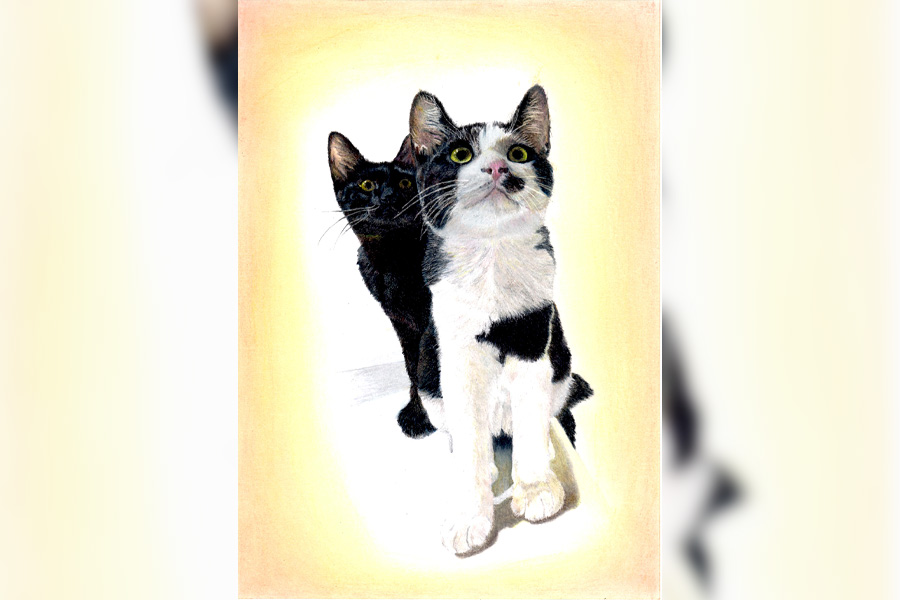 進英工業のアート部門では、一緒に暮らす愛犬・愛猫、そして虹の橋を渡った子の写真をもとに、色鉛筆で心温まる絵をお描きします。